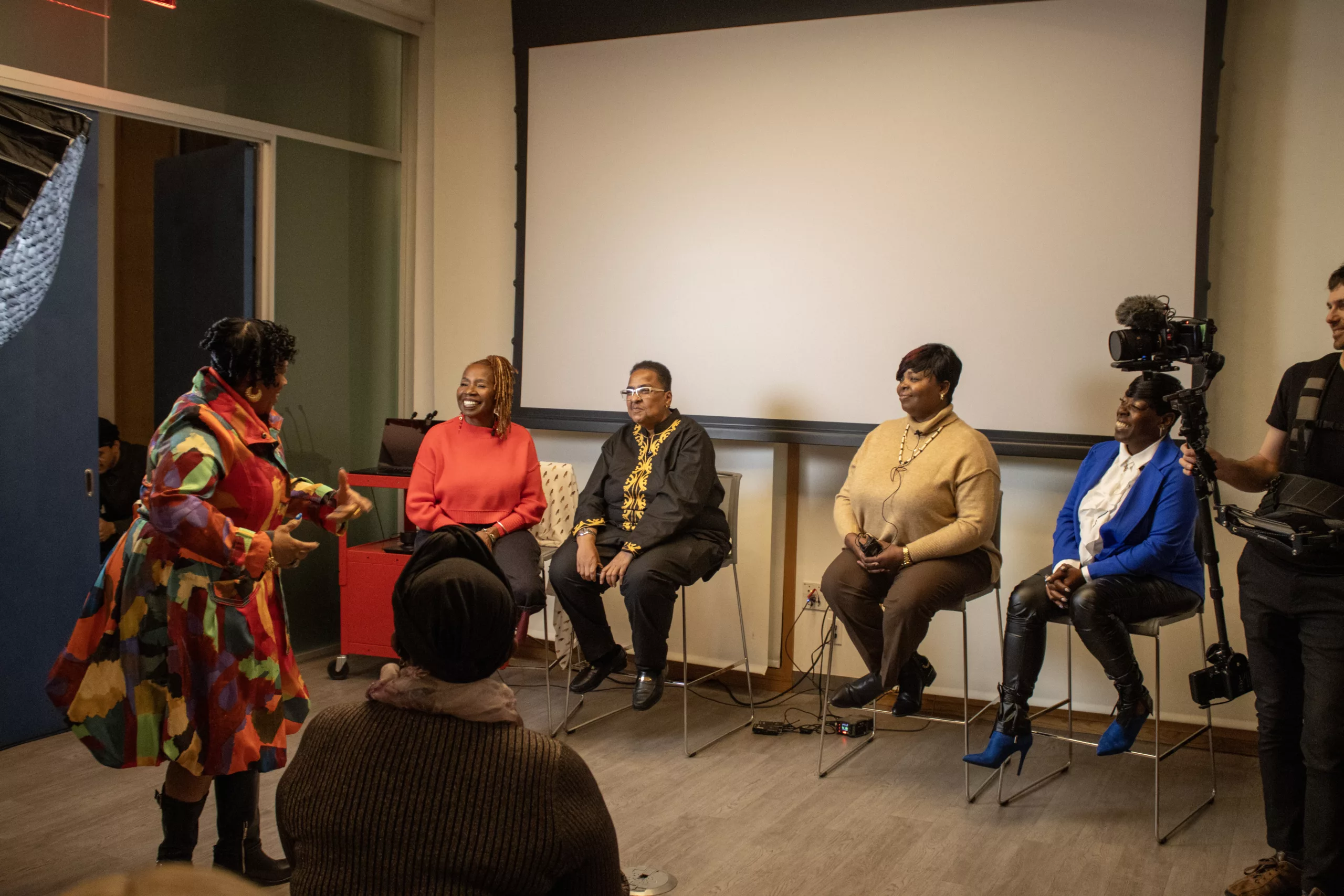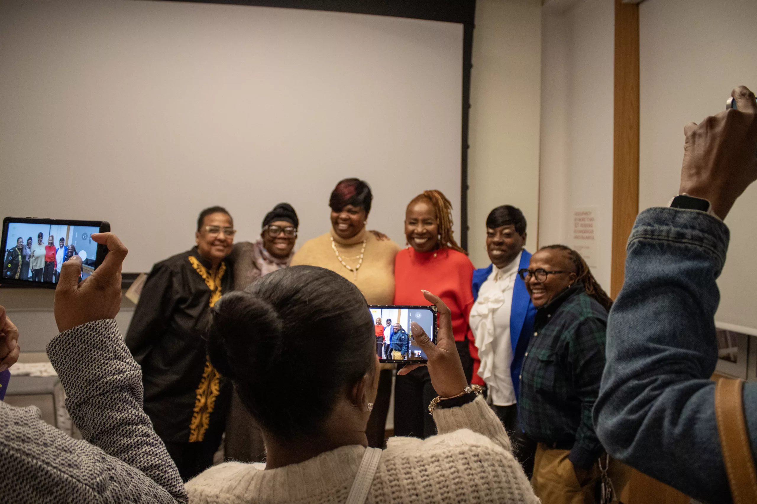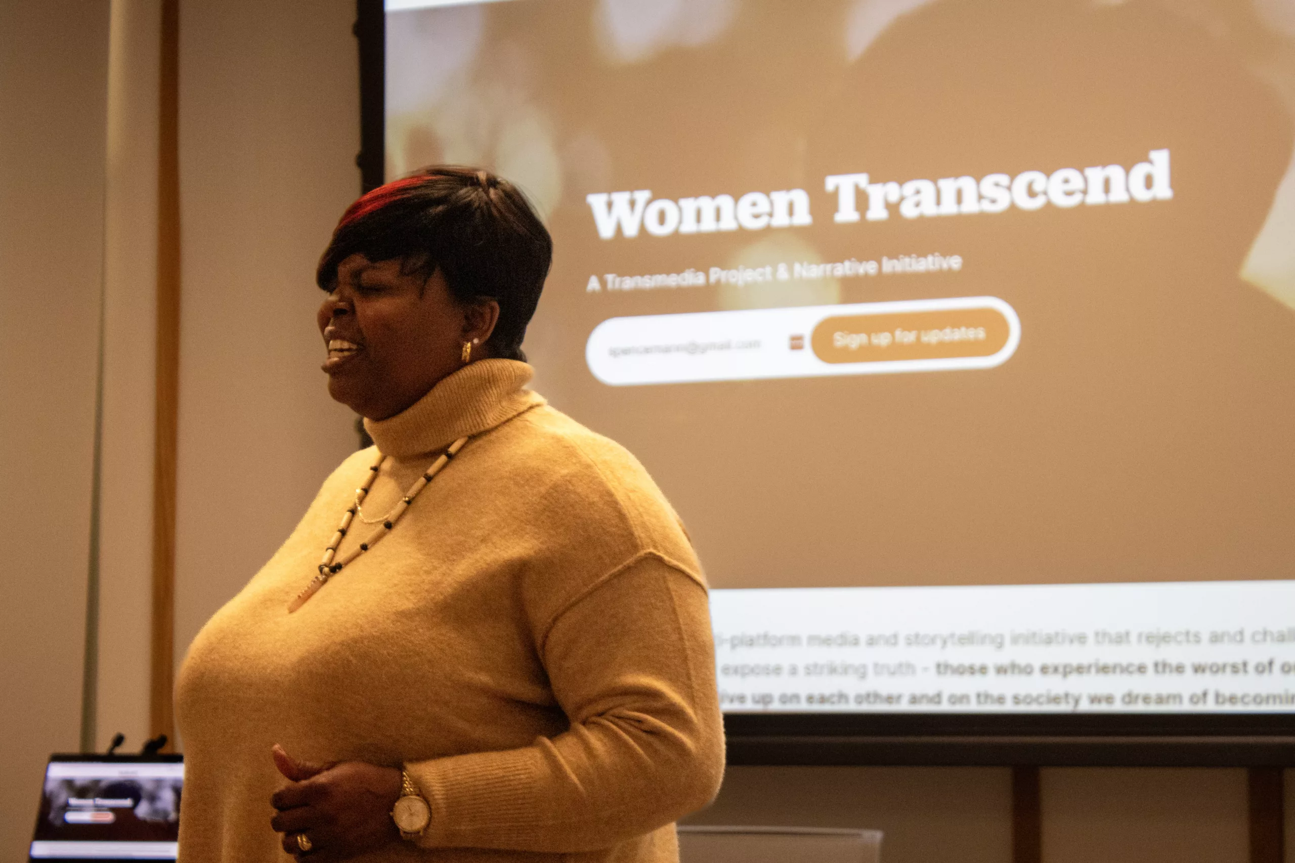 On March 1, 2024, Colorlines hosted a private and invitation-only screening of Women Transcend for formerly incarcerated women and their supporters. The event took place at Women Building Up in Brooklyn, New York. Many of the women that appear in the film were in the audience cheering each other on. The film was followed by a deeply-moving discussion hosted by the incredible Dr. Iyanla Vanzant with leaders Cheryl Wilkins, Ivy Mathis, Mama Glo, and Consuela Gaines. Photos by Rabia Syed Maral